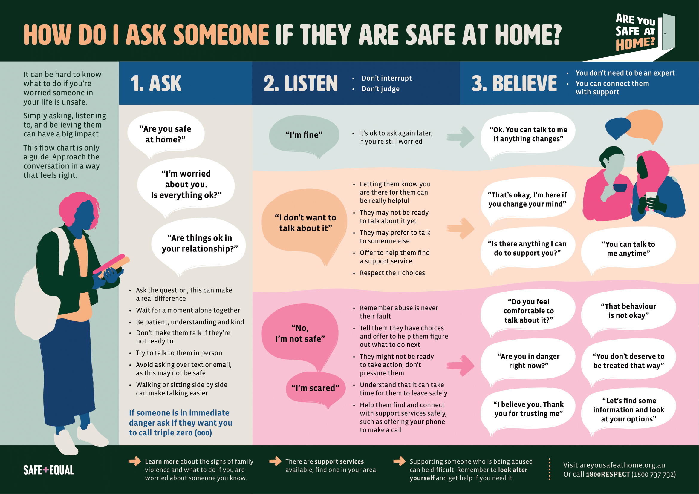 It can be hard to know what to do if you’re worried someone in your life is unsafe. But simply asking, listening and believing them can have a big impact.